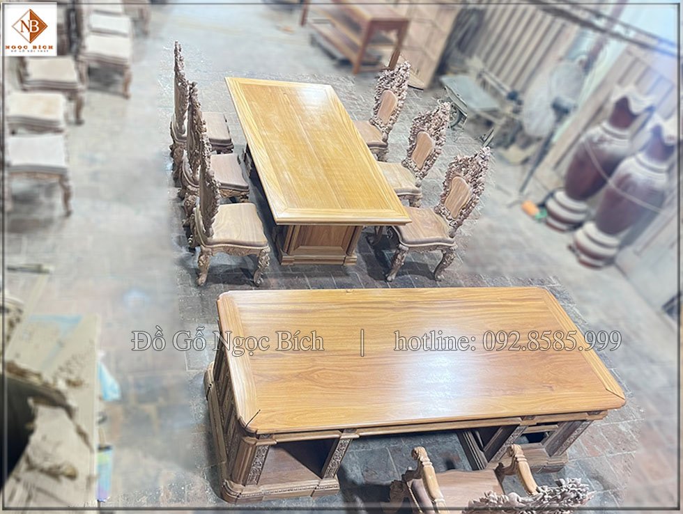 Bộ bàn ghế họp mẫu tân cổ điển gỗ tự nhiên