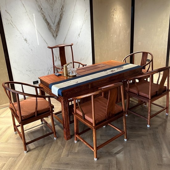 Trong các phòng trà đạo cao cấp, gỗ gõ đỏ là vật liệu xuất hiện với tần suất rất cao.