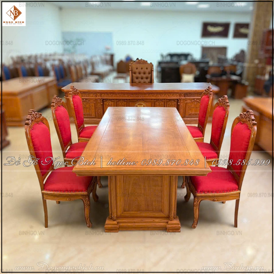 Những cuộc họp quan trọng, các buổi ký kết hay làm việc với đối tác luôn cần không gian chuyên nghiệp. Combo bàn họp 2m40 và ghế họp hoa lá tây giúp tạo dấu ấn mạnh mẽ về sự chỉn chu và tầm vóc.