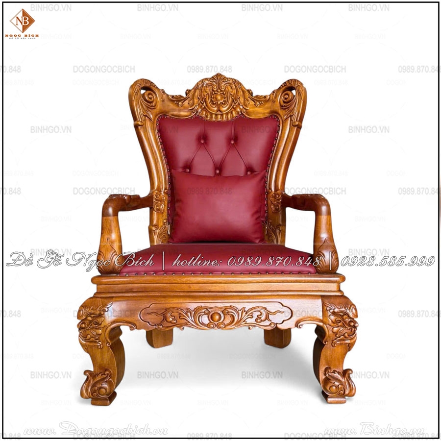 - Vai ghế được chạm hoa lá Tây tinh xảo, làm tăng thẩm mỹ và sự sang trọng.