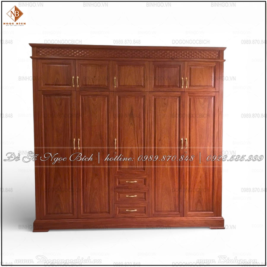 Tủ quần áo 3 buồng 5 cánh gỗ tự nhiên