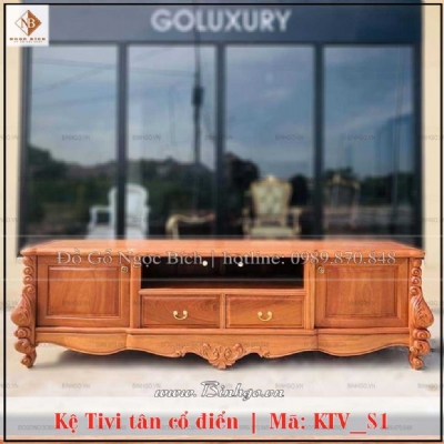 Kệ Tivi tân cổ điển gỗ Gõ Đỏ mã KTV-S1