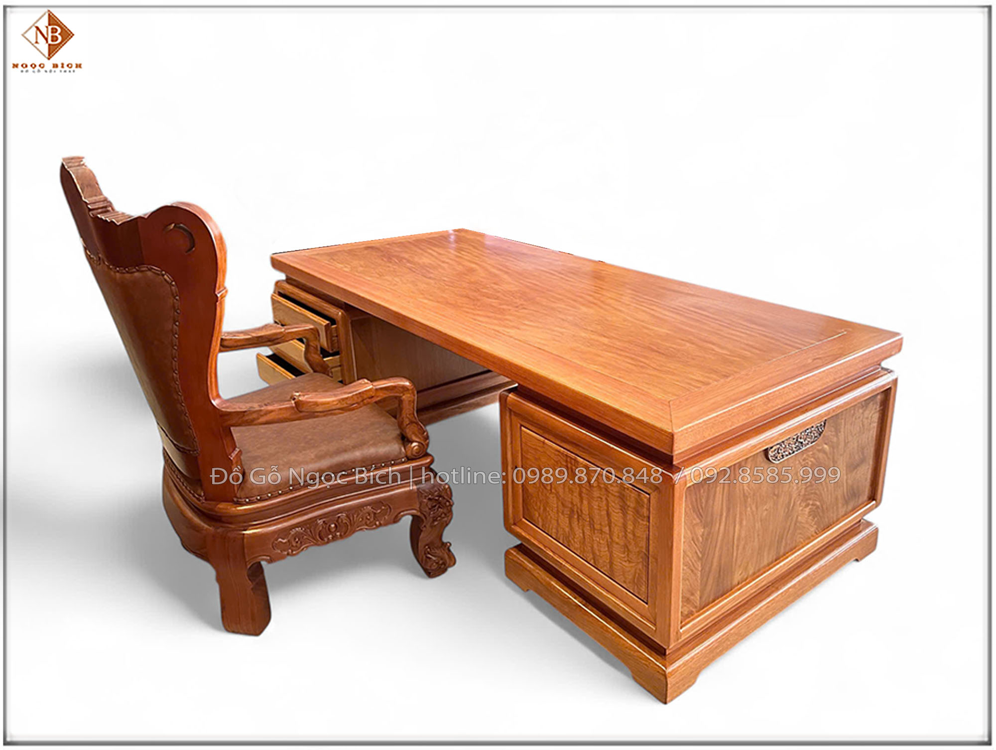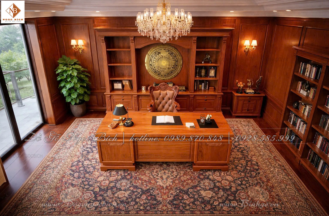 Bàn làm việc Chủ tịch gỗ Gõ Đỏ kích thước 2m phong cách tân cổ điển