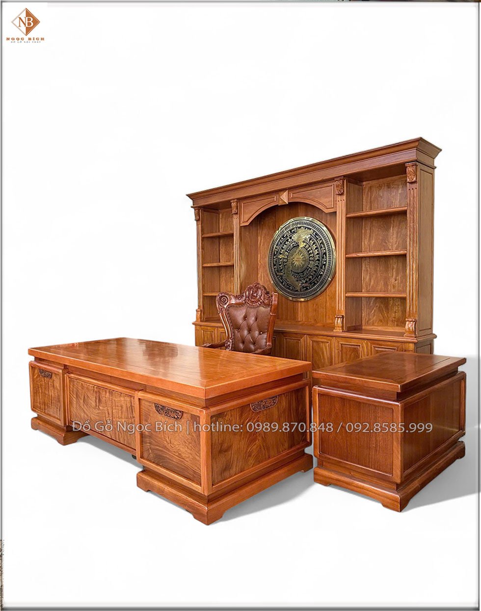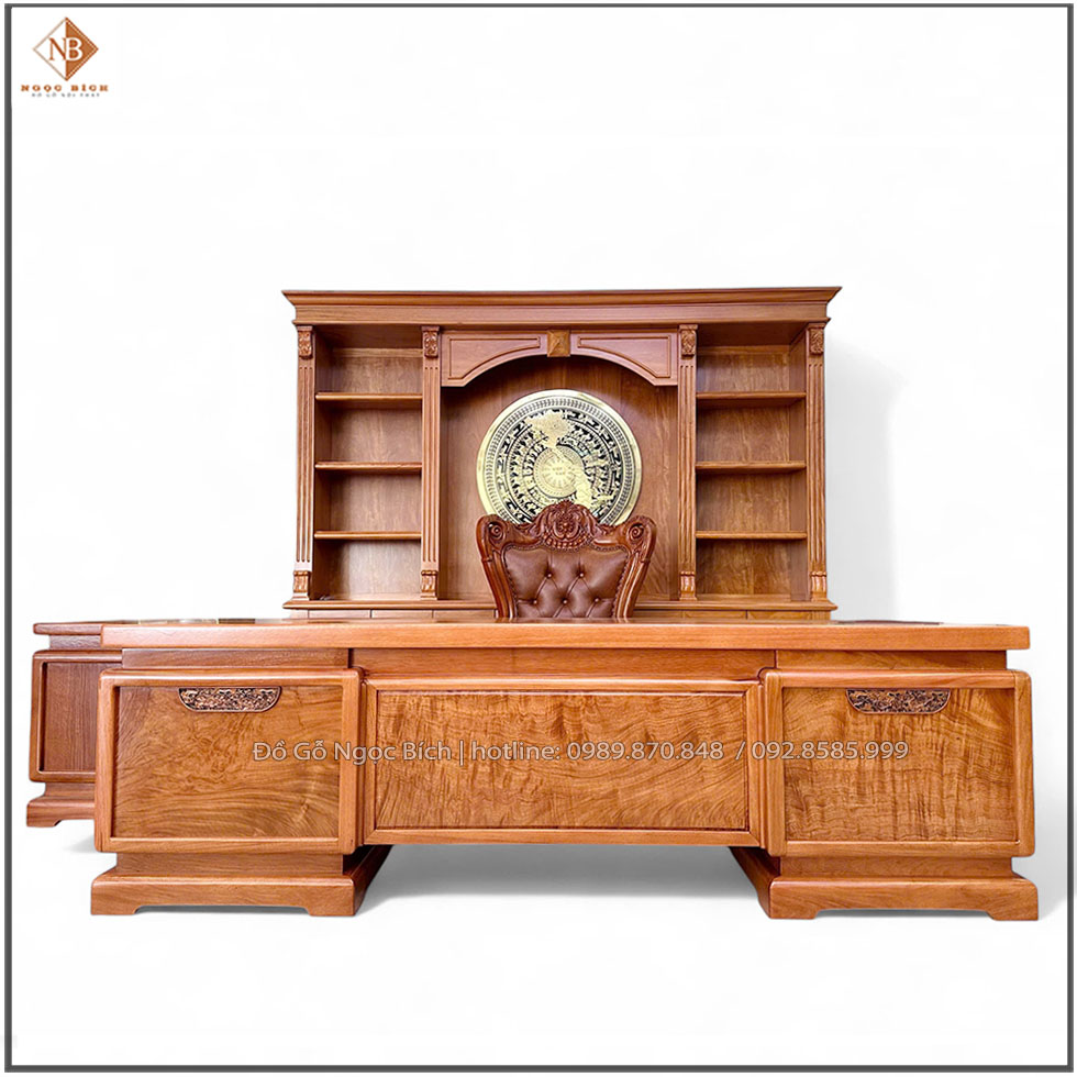Bàn làm việc Chủ tịch gỗ Gõ Đỏ kích thước 2m2 phong cách Obama