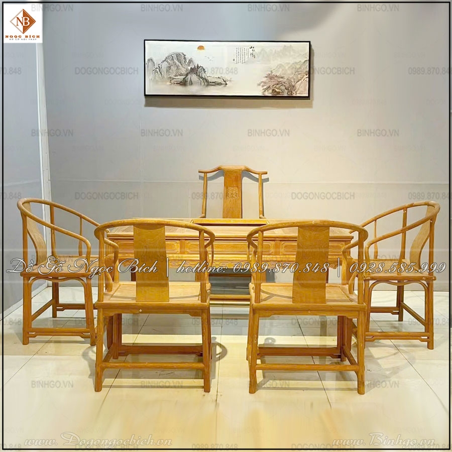 Bàn trà gỗ tự nhiên kèm ghế cong đẹp cho phòng tiếp khách