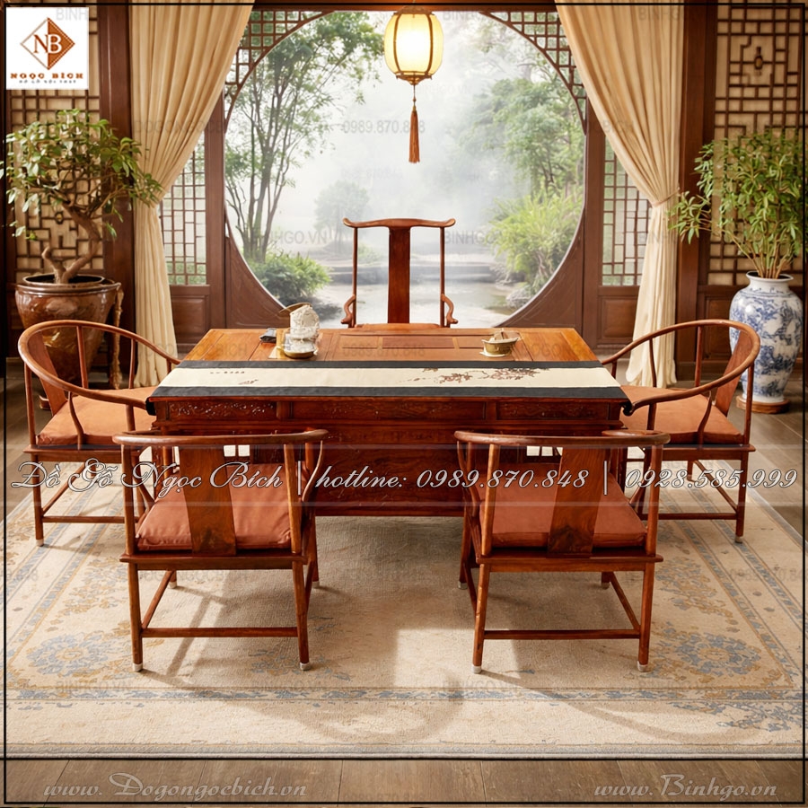 Thiết kế mang phong cách Á Đông hiện đại, tối ưu cho không gian thưởng trà, tiếp khách hoặc sử dụng trong phòng làm việc của lãnh đạo. Tổng thể sản phẩm tạo nên sự cân đối, hài hòa và mang lại cảm giác ấm cúng, gần gũi nhưng vẫn đầy đẳng cấp.