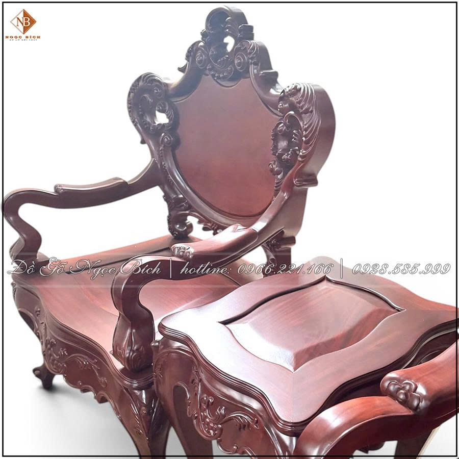 Khi kết hợp với hoa văn Louis cầu kỳ, gỗ gõ đỏ giúp sản phẩm vừa có giá trị thẩm mỹ vừa có giá trị sử dụng lâu dài.