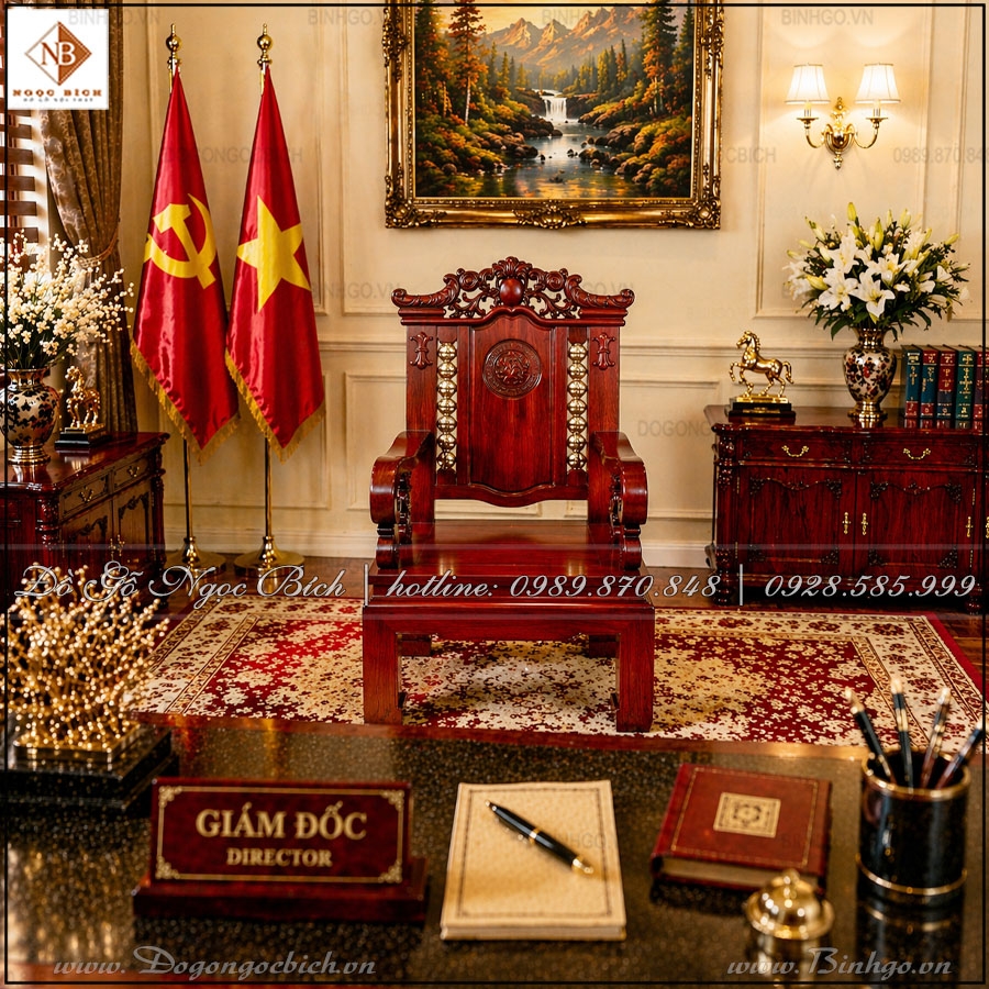Những chi tiết chạm khắc như hoa lá, họa tiết đối xứng, phù điêu truyền thống… được xử lý vừa phải, không rối mắt. Đây là điểm rất phù hợp với môi trường hành chính, nơi cần sự nghiêm túc nhưng vẫn sang trọng.