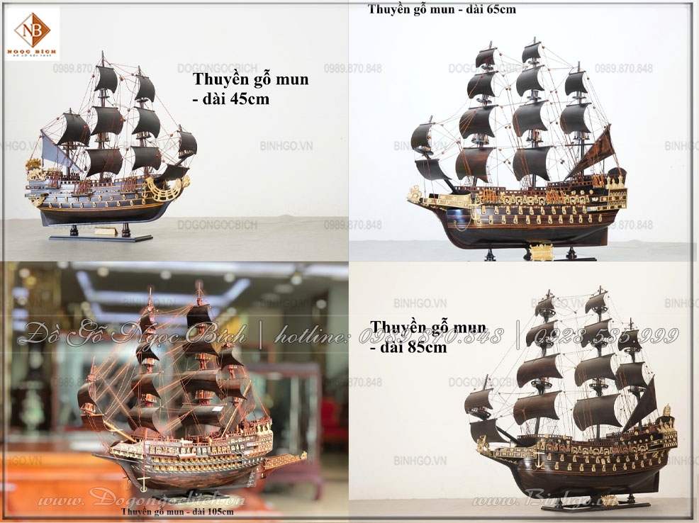 Thuyền 40–60cm phù hợp bàn giám đốc, kệ tủ.