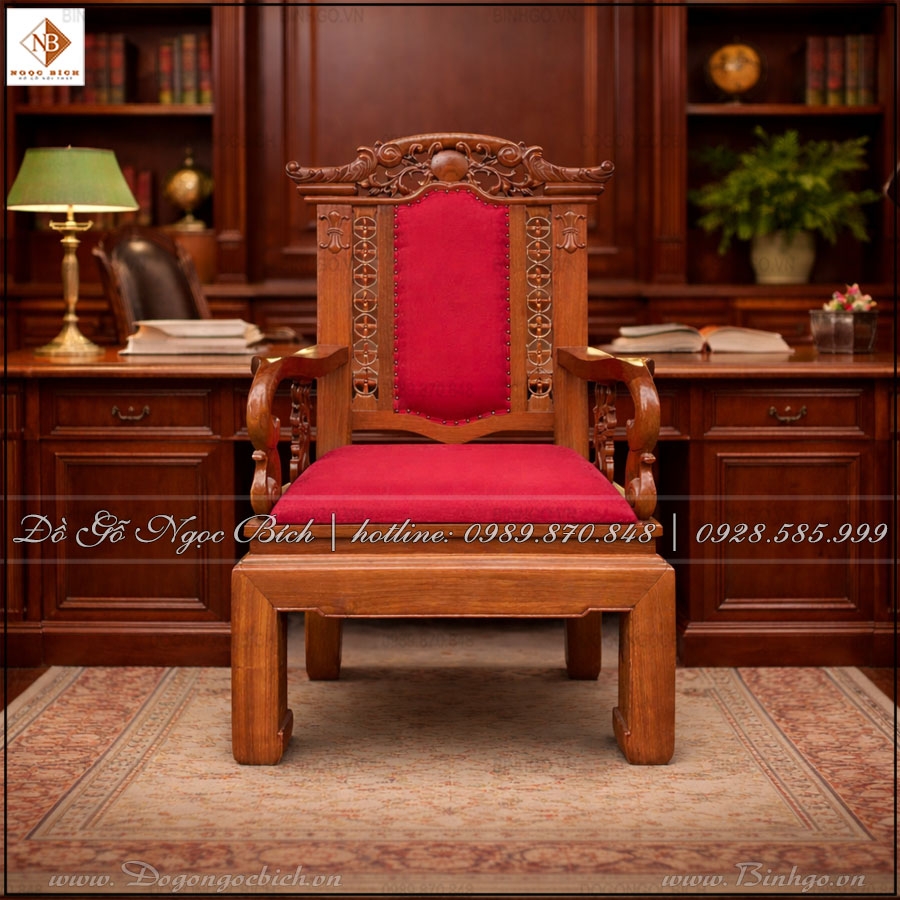 Ghế Chủ Tịch Gỗ Gõ Đỏ Bọc Da Cao Cấp Màu Đỏ Đô
